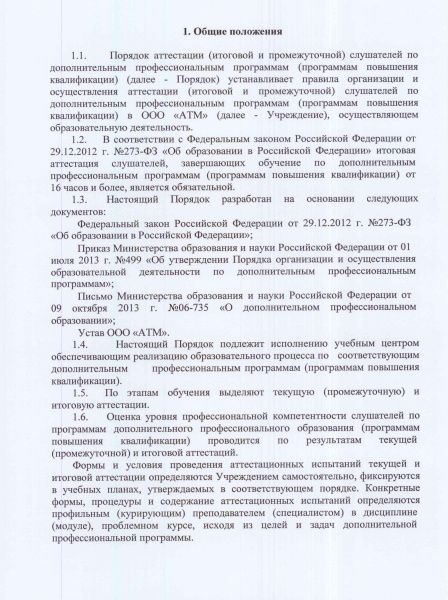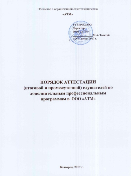 Порядок аттестации слушателей по доп. проф. программам в ООО АТМ