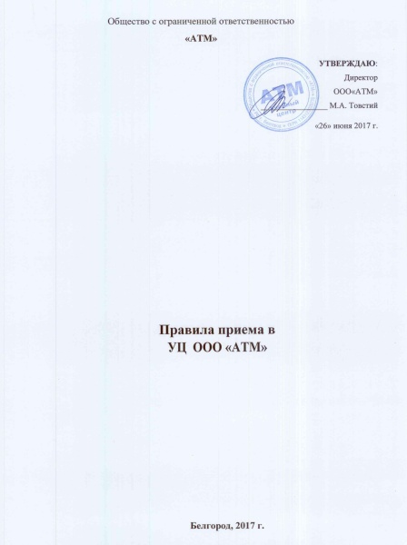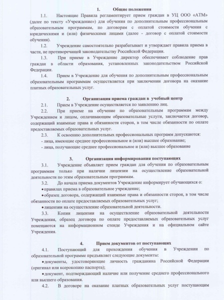 Правила приема и порядок зачисления слушателей в ООО АТМ