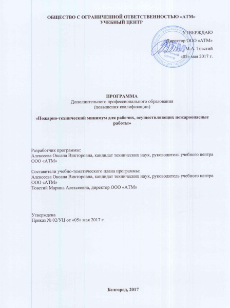 06. Программа дополнительного профессионального образования повышения квалификации «Пожарно-технический минимум для рабочих, осуществляющих пожароопасные работы»