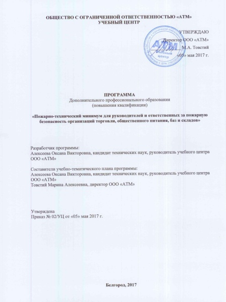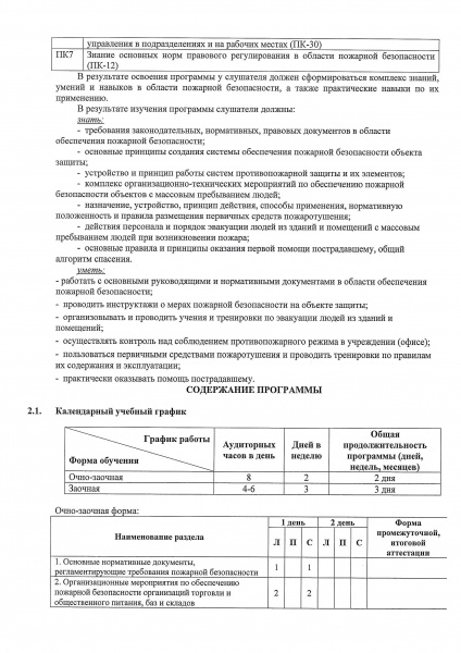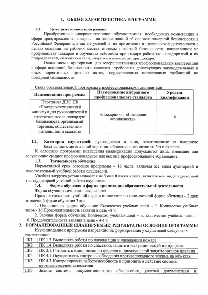 11. Программа дополнительного профессионального образования повышения квалификации «Пожарно-технический минимум для руководителей и ответственных за пожарную безопасность организаций торговли, общественного питания, баз и складов»