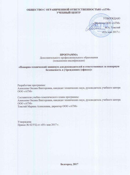 04. Программа дополнительного профессионального образования повышения квалификации «Пожарно-технический минимум для руководителей и ответственных за пожарную безопасность в учреждениях (офисах)»